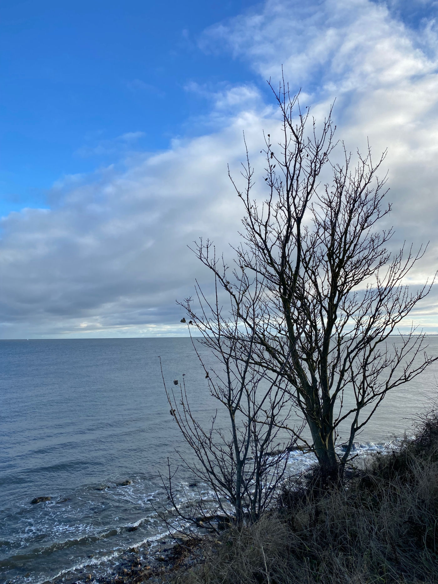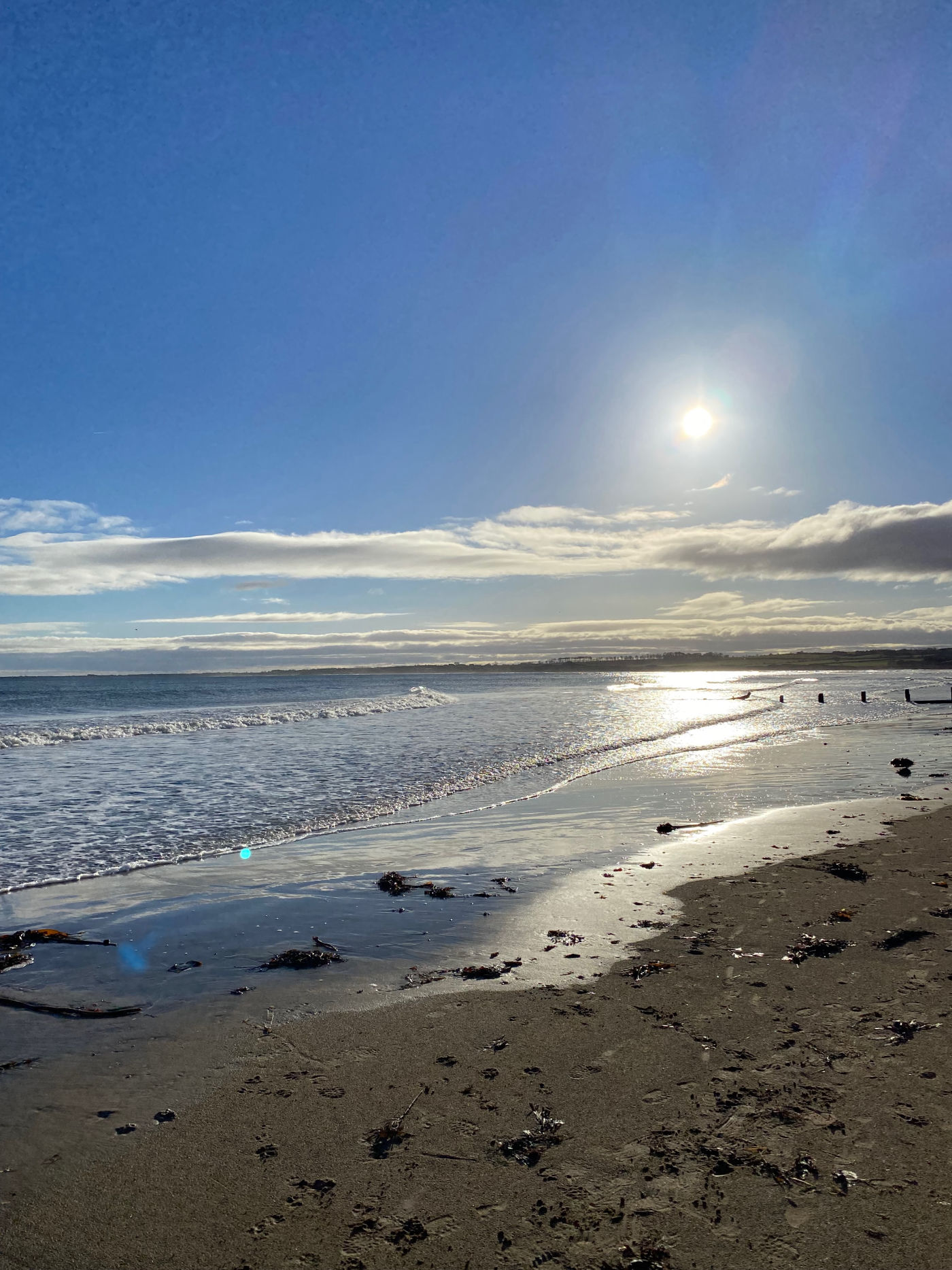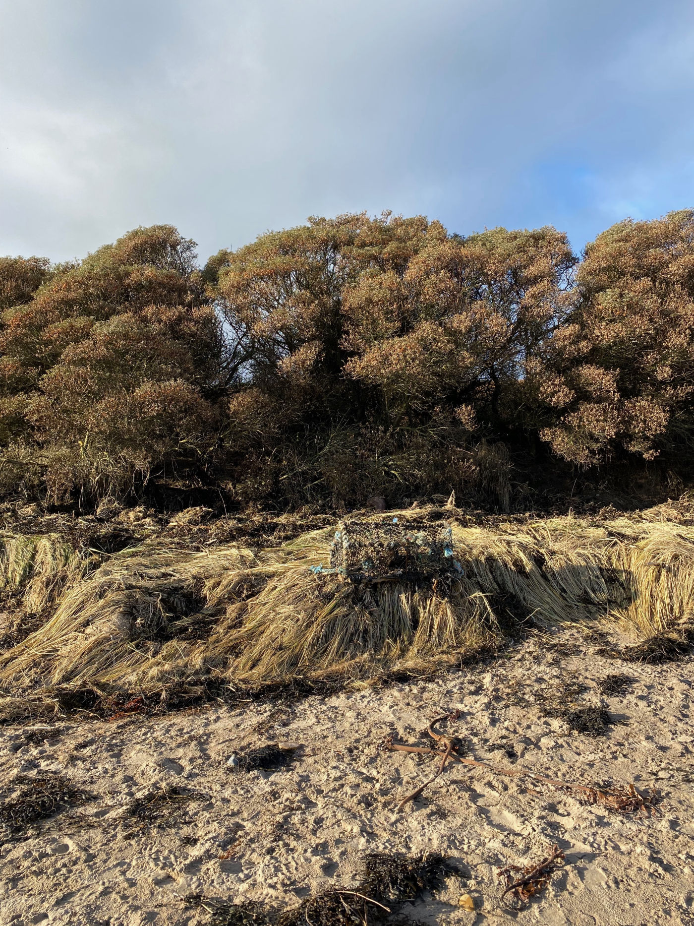 On this Saturday, as we walk on the beach, my daughters and I examine the evidence of the storm that slammed into Alnmouth a couple of weeks ago. It sliced into the dunes that fringe the beach, leaving jagged wounds that bleed out sand. The wooden walkway that leads down from the village now ends abruptly almost a metre above the beach, which is still strewn with seaweed tangled into knots. It is nearly high tide, and the shoreline is edging closer, seeping into the bladderwrack. My daughters quickly shed their coats and jump onto concrete blocks that are now fully exposed all along this section of the beach, evidence of another conflict, planted there in anticipation of an enemy that never reached our shores eighty years ago. We have learned nothing, I think.