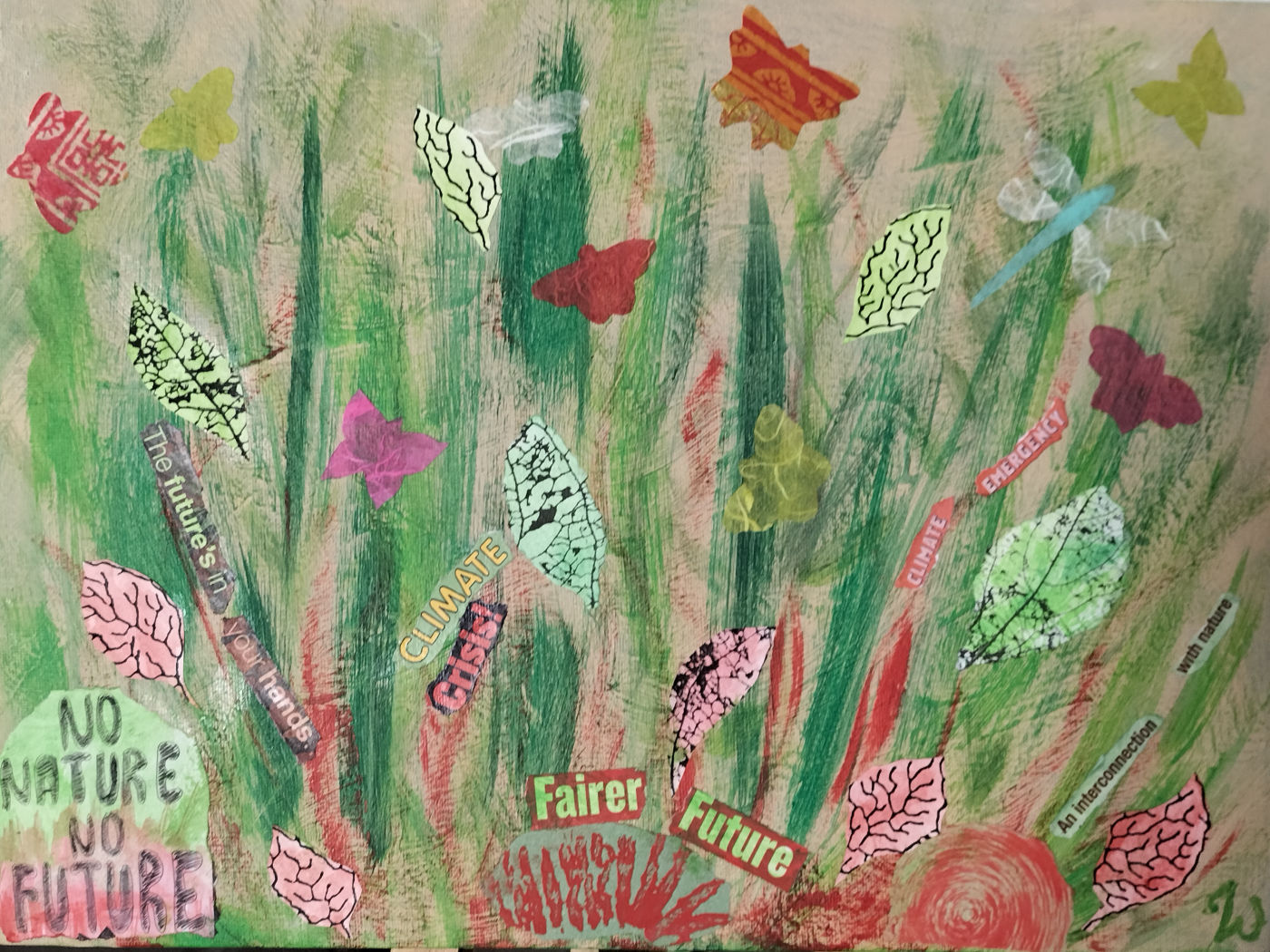 A bit of a butterfly, I’ve tended to flit from project to project, prose to poetry, writing to art, resulting in unfinished WIPs (Works In Progress). Most of my work concerns the natural world/environmental issues. And I’ve started experimenting with combinations, creating artworks with a message about the plight of nature, some exhibited locally.