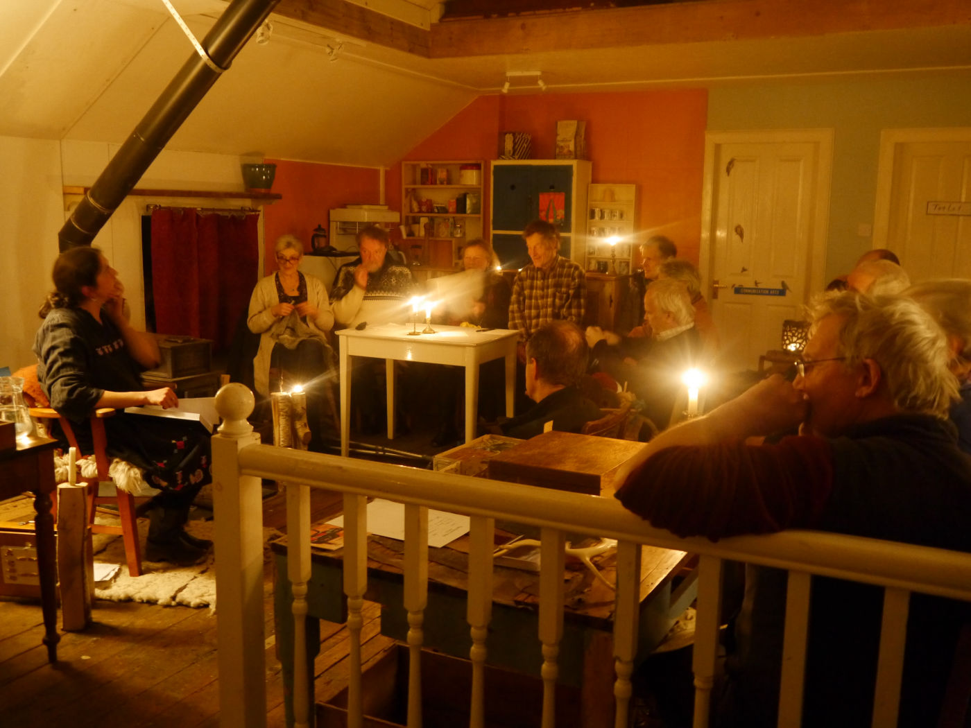 In late 2019, honouring the orality of my text and the Icelandic culture that had inspired it, and conscious that, for better or worse, eventually the book would become a 'product', I had made a commitment to read The Raven's Nest aloud to an audience from start to finish, so that it could exist first as breath on the wind, spoken. Inspired by the Icelandic tradition of kvöldvaka ('the evening wake'), where someone would read to the household while they spun, knitted and darned wool, by March 2020 I was mid-way through a series of candlelit readings, in a gallery in SW Scotland where I was artist-in-residence. I read aloud weekly to a roomful of people busy with their hands, or with their eyes closed, each being transported to another time and place.